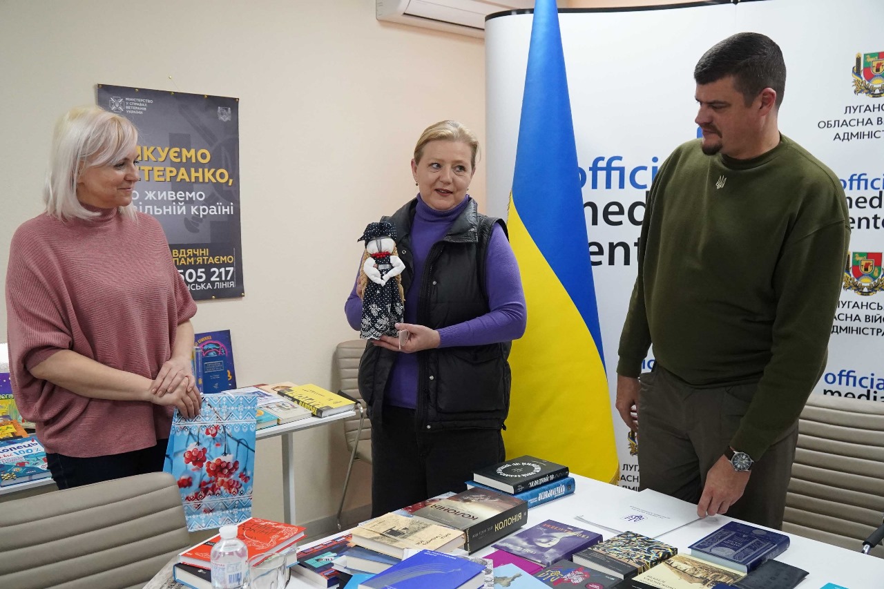 «Усі війни розпочинаються і закінчуються у головах. Ми маємо це усвідомлювати і нести українське слово. Наразі мій напрям роботи – інформаційна безпека та семантичне протиборство. Тому у цій добірці багато книг про пошук сенсу життя, ментальний перезапуск нашої свідомості. Військова тематика представлена дуже потужними авторами, які самі пройшли пекло цієї війни. Дуже багато книжок для дітей, навіть науково-популярні та казки Ганса Крістіана Андерсена з сучасним українським перекладом та українськими ілюстраціями. Адже «мама мила раму» - це не український контекст», – зазначила Юлія Лапутіна, презентуючи літературу, яку передала для жителів Луганської області.