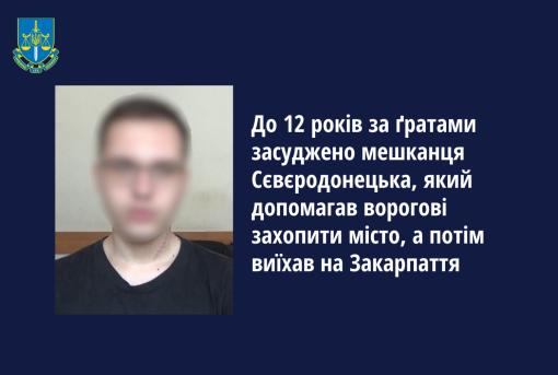 До 12 років за ґратами засуджено мешканця Сєвєродонецька, який допомагав ворогові захопити місто, а потім виїхав на Закарпаття