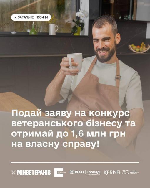 Ветерани, ветеранки, їхні родини та родини загиблих Захисників і Захисниць можуть взяти участь у грантовій програмі «Варто РОБИти СВОЄ 2.0» та отримати від 600 тисяч до 1,6 мільйона гривень на започаткування або масштабування свого бізнесу. Програма реалізується Українським ветеранським фондом Мінветеранів у партнерстві з Благодійним фондом «МХП-Громаді» та агровиробничою компанією KERNEL.