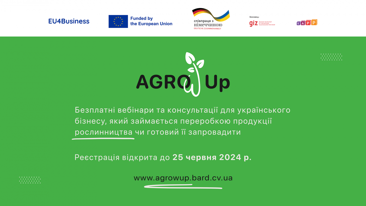 Програма AGROw UP – це безплатні консультації та вебінари для українського бізнесу, який займається переробкою продукції рослинництва чи готовий її запровадити.