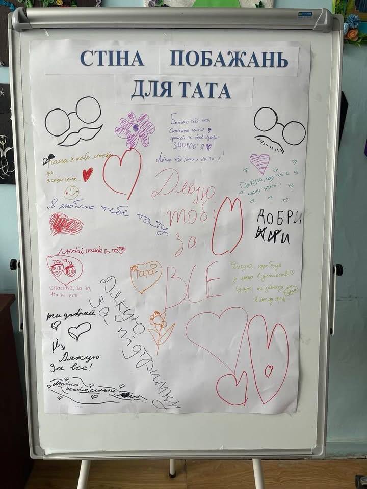 Особливим моментом стала "Стіна побажань", де діти залишили щирі слова та найтепліші побажання для своїх татусів.
