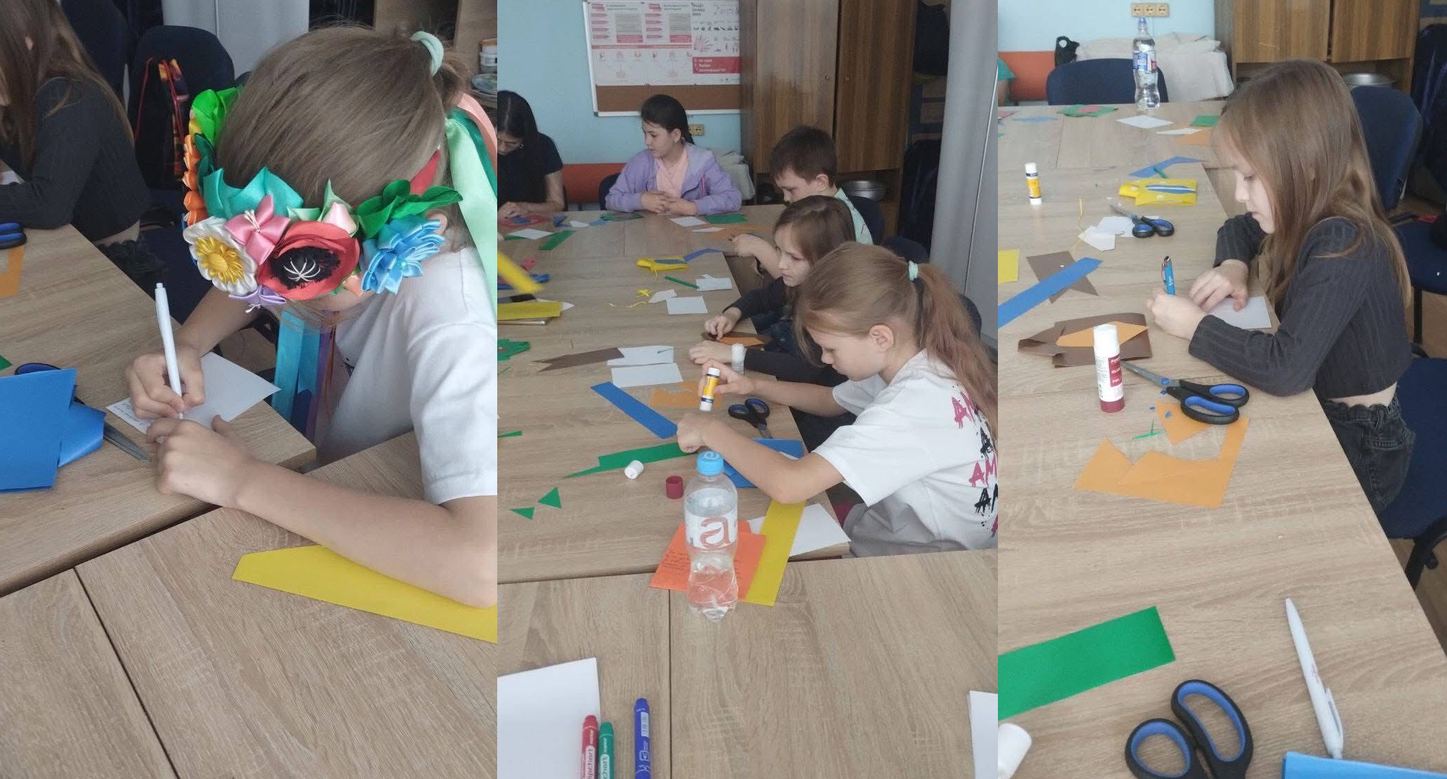 Відвідувачі дитячого майданчику відпочинку Сєвєродонецького дитячо-юнацького комплексу «Юність» з великим ентузіазмом виготовляли вітальні аплікації.