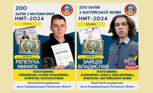 Два випускники Ліцею багатопрофільного з Сєвєродонецька набрали по 200 балів за результатами НМТ-2024