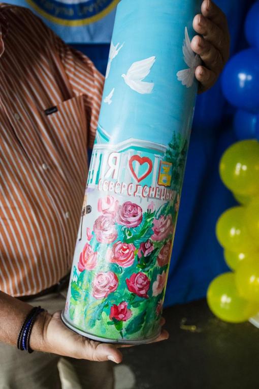 Вражаючий лот від викладачки КЗ "Сєвєродонецька художня школа "Юлії Боярчук — гільза з боїв за Бучу, перетворена художницею на витвір мистецтва та продана на благодійному заході у США.