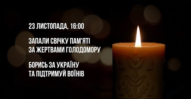 Відтак вшанування пам’яті жертв Голодомору цього року проходить під гаслом «Запали свічку пам’яті за жертвами Голодомору. Борись за Україну та підтримуй воїнів».