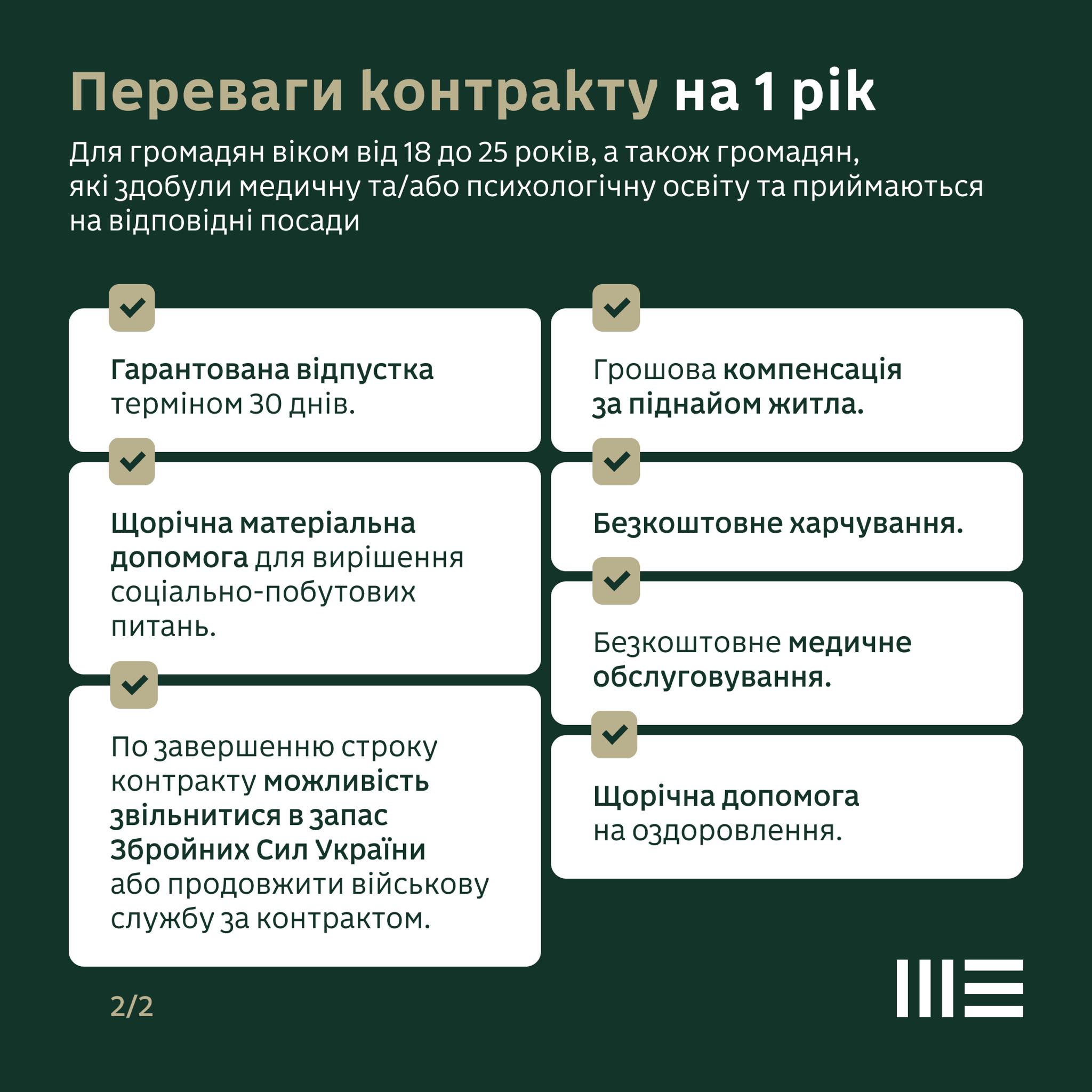 Ти маєш вибір - можливість укладання контракту про проходження військової служби на 1 (один) рік, якщо тобі від 18 до 25 років, або якщо ти маєш медичну та/або психологічну освіту.