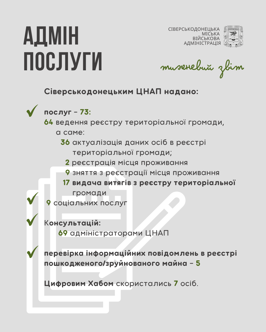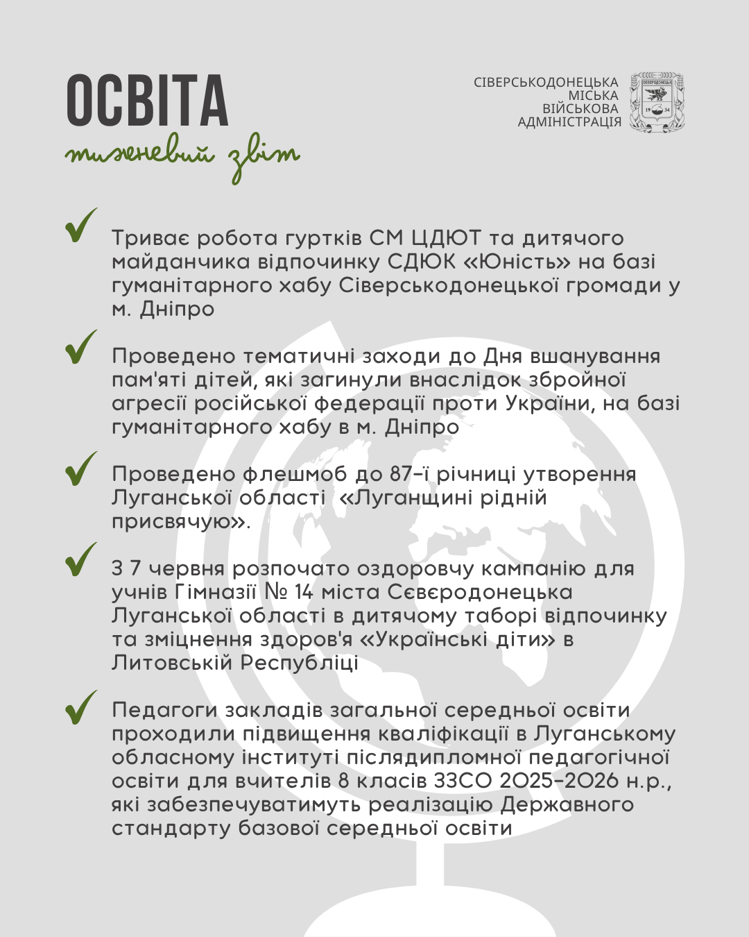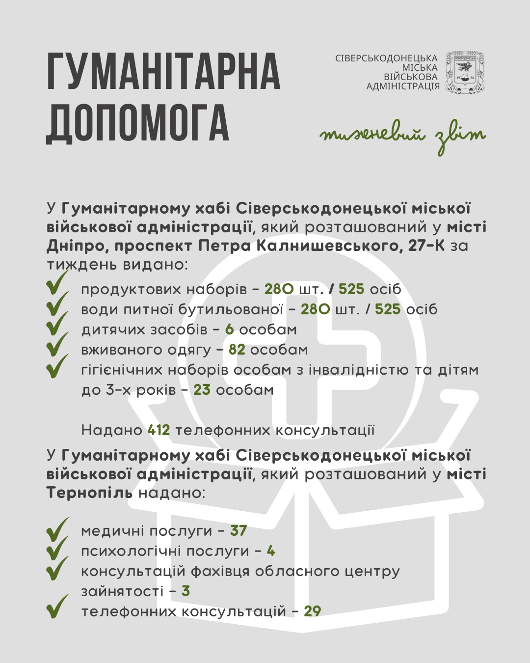 Інформуємо про проведену роботу та проведені заходи за минулий тиждень