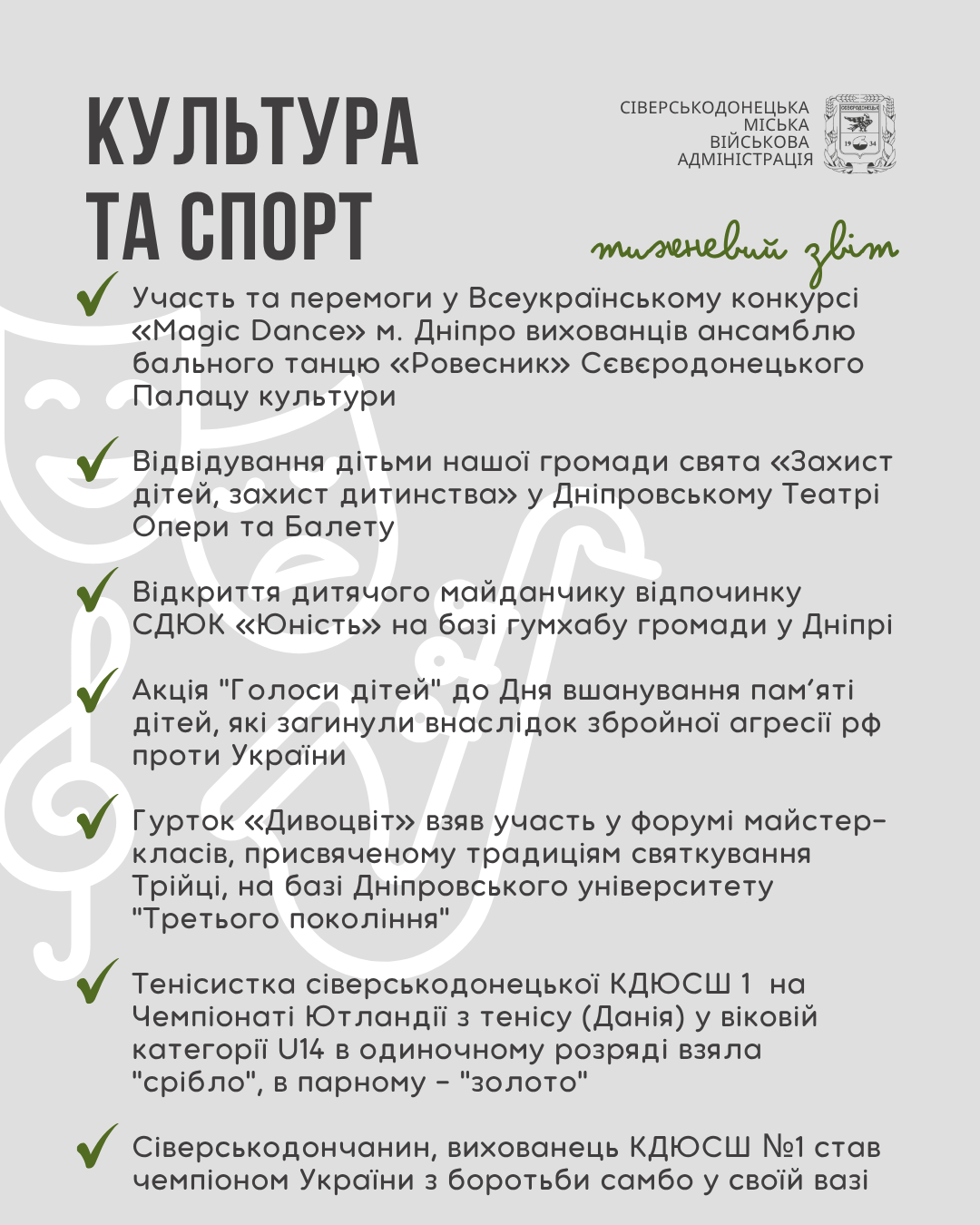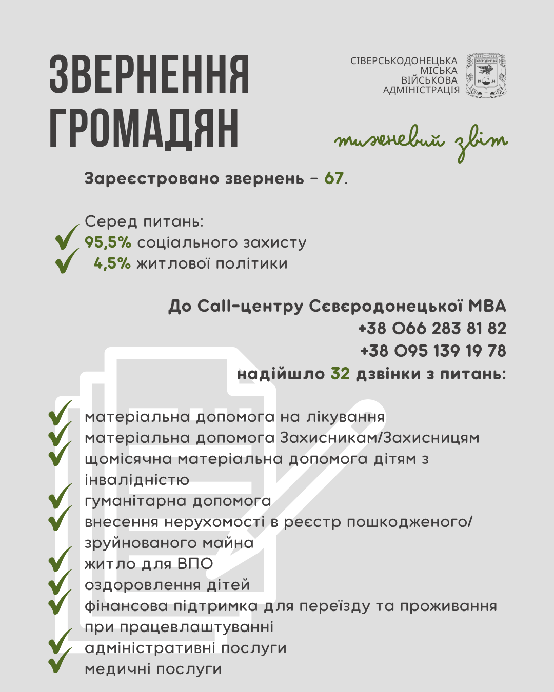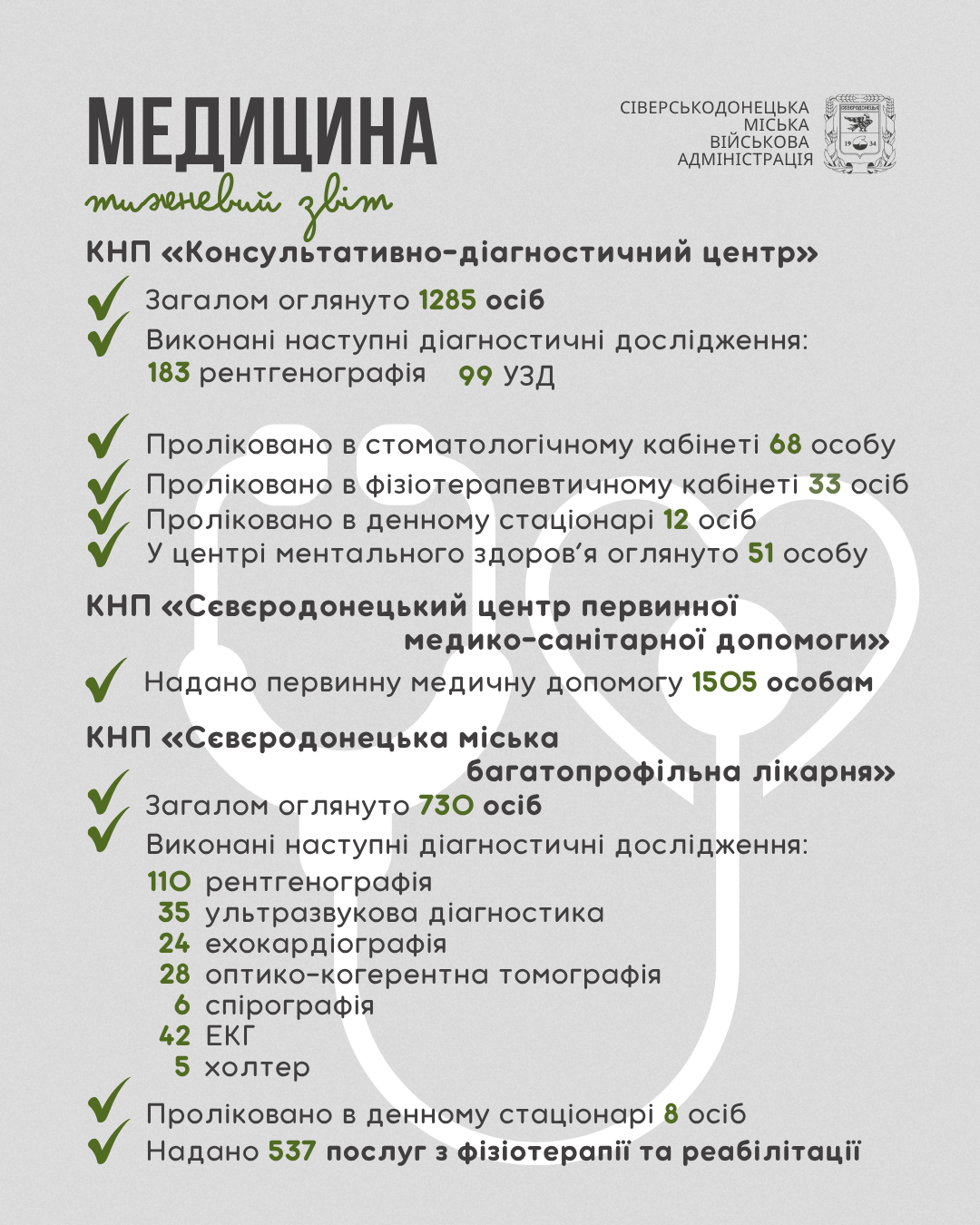 Інформуємо про проведену роботу та проведені заходи за минулий тиждень