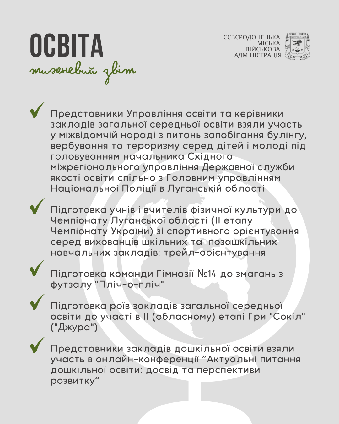 Інформуємо про проведену роботу та проведені заходи за минулий тиждень