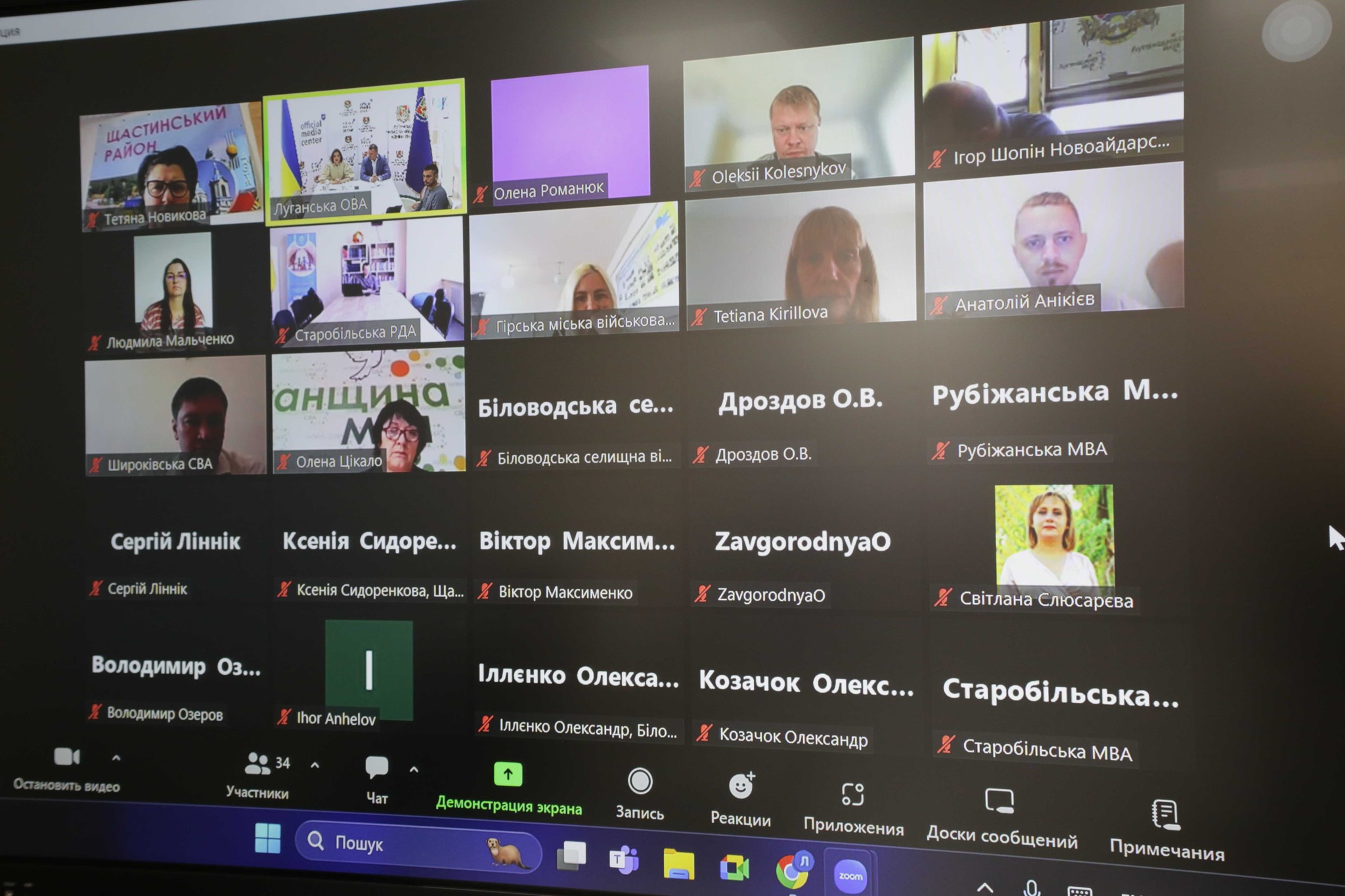 Учасники заходу обговорили ключові позиції комплексного дослідження викликів та бачення інституційного відновлення Луганської області після деокупації, представленого Олексієм Колесниковим, головою ВГО «Асоціація сприяння самоорганізації населення».