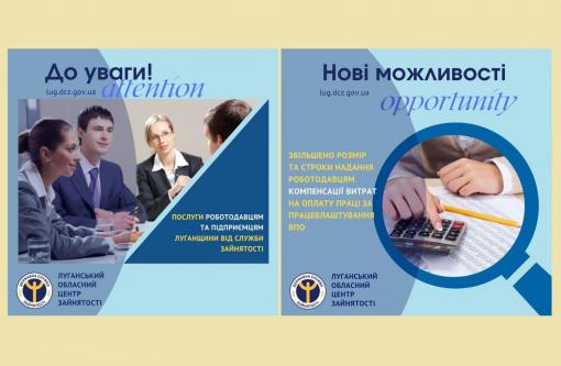 Луганська обласна служба зайнятості нагадує роботодавцям про можливість отримати послуги онлайн та збільшення розміру і строків надання компенсації витрат на оплату праці за працевлаштування ВПО