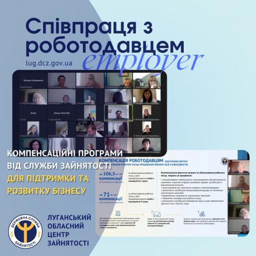 Луганський обласний центр зайнятості провів онлайн-зустріч «Компенсаційні програми від служби зайнятості роботодавцям для підтримки та розвитку бізнесу»