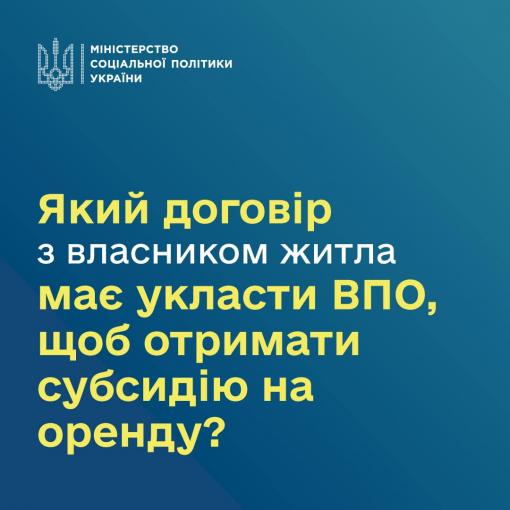 Мінсоцполітики роз'яснює, який договір треба укласти ВПО з власником житла, щоб мати змогу оформити субсидію на оренду?