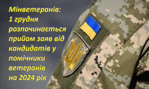 Мінветеранів: 1 грудня розпочинається прийом заяв від кандидатів у помічники ветеранів на 2024 рік