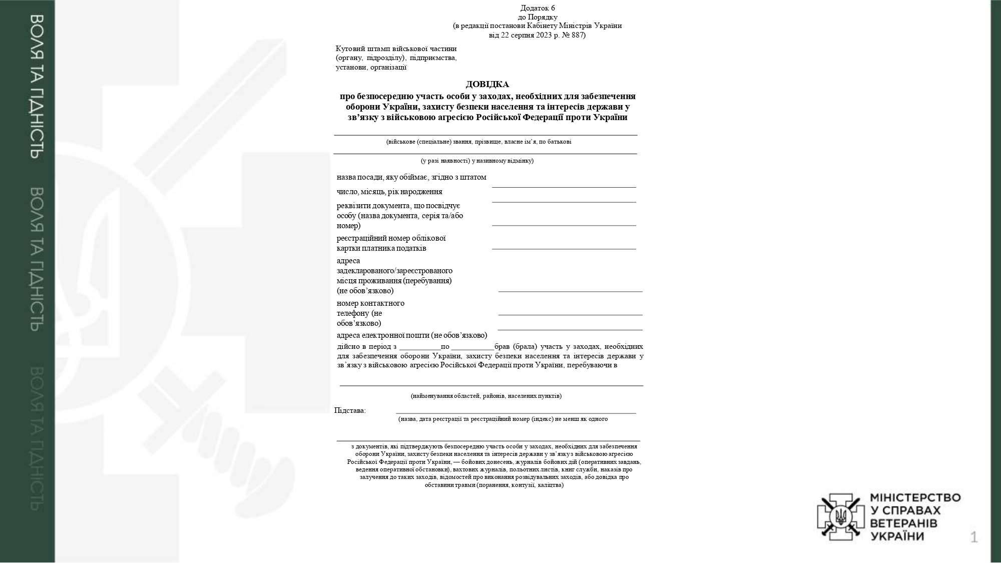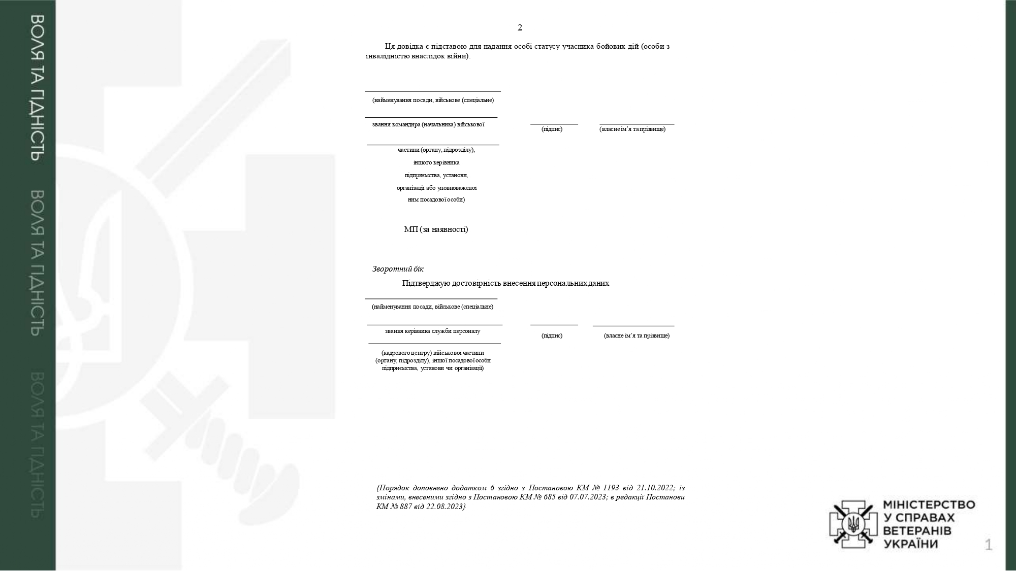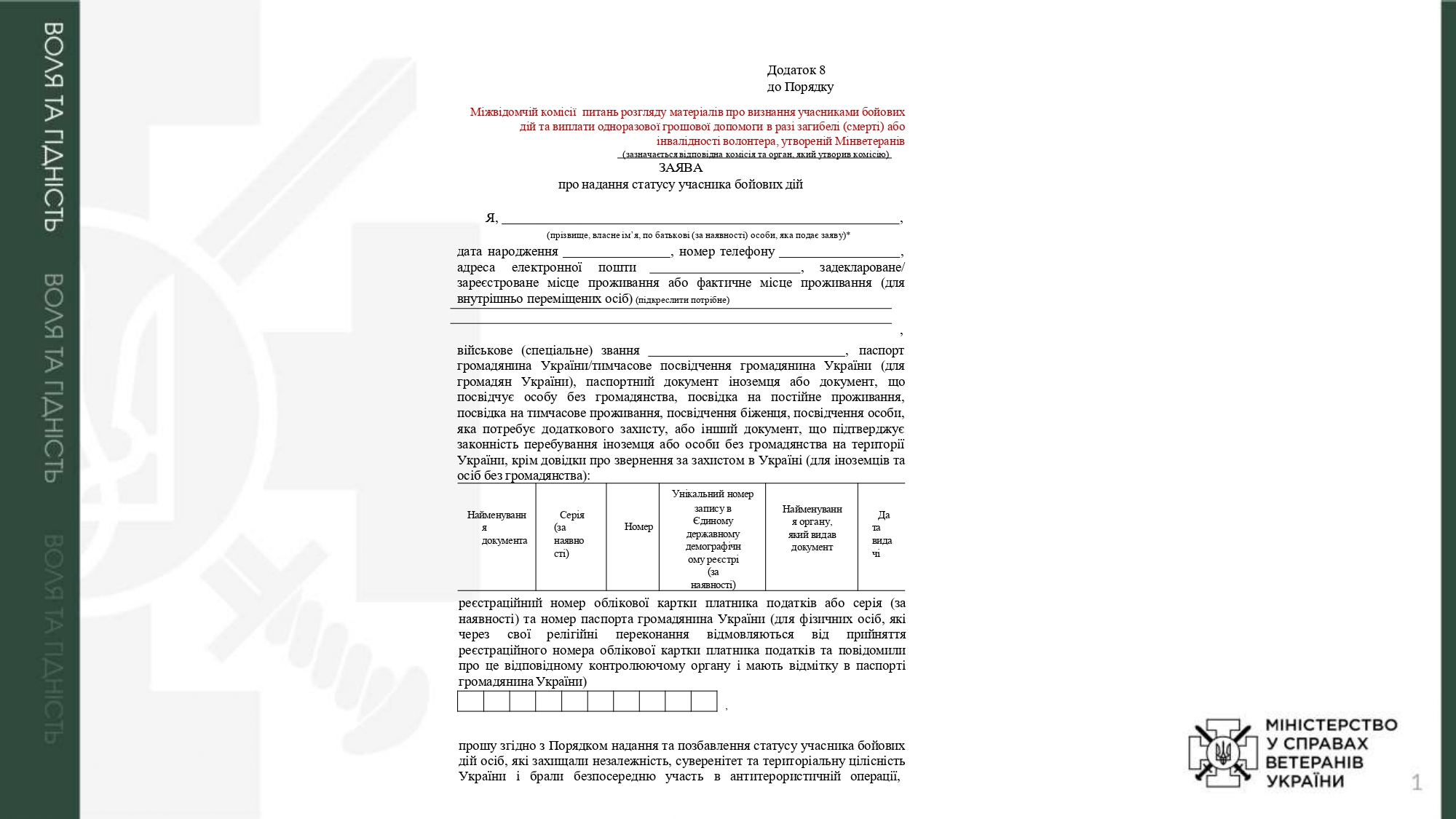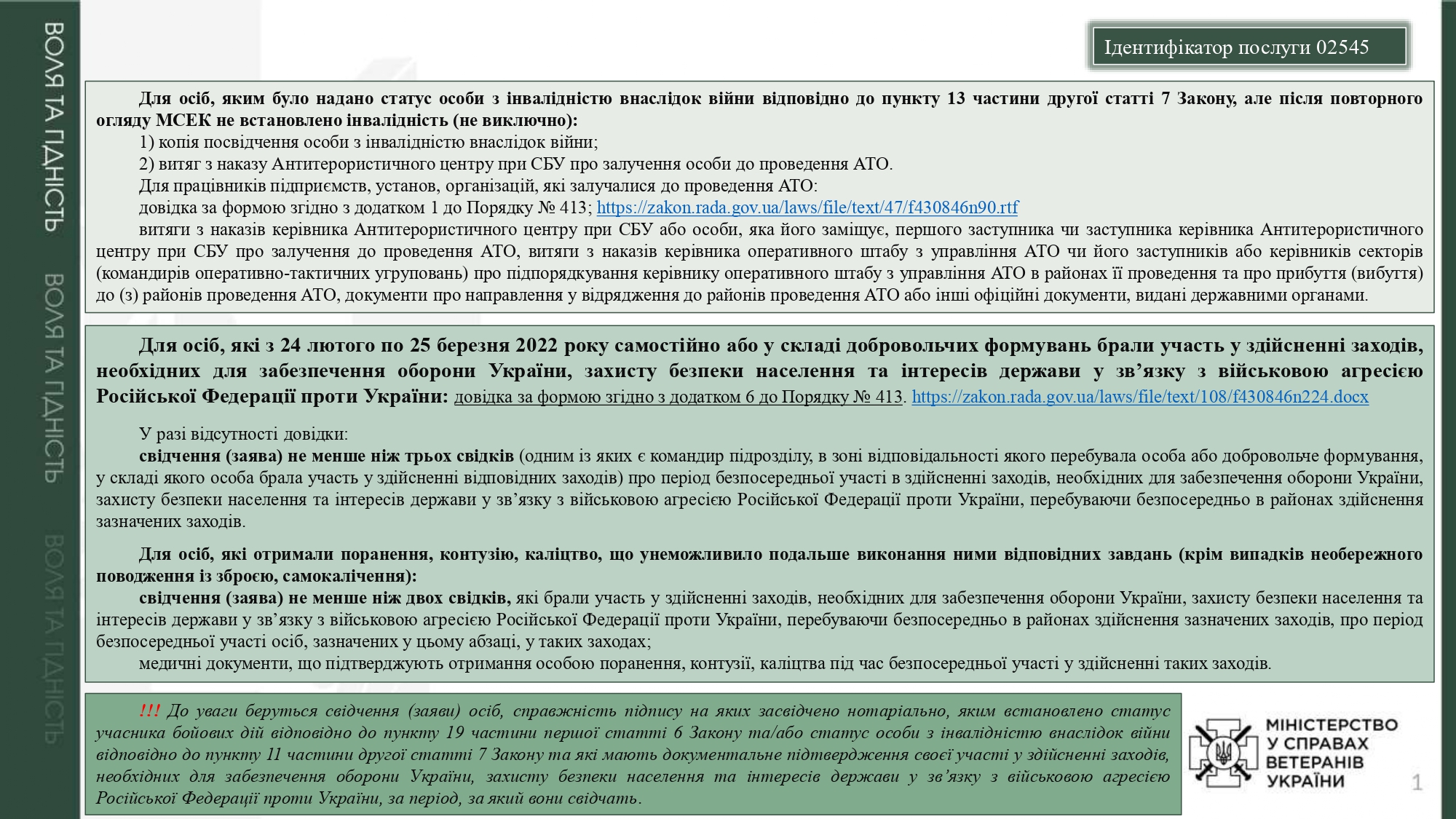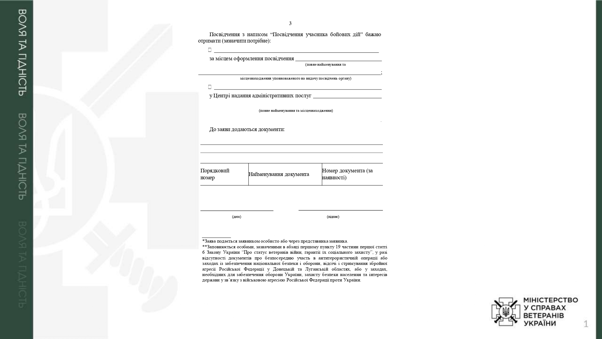 Мінветеранів України підготовлено роз'яснювальні матеріали щодо адмінпослуг. "Встановлення статусу учасника бойових дій, видача посвідчення