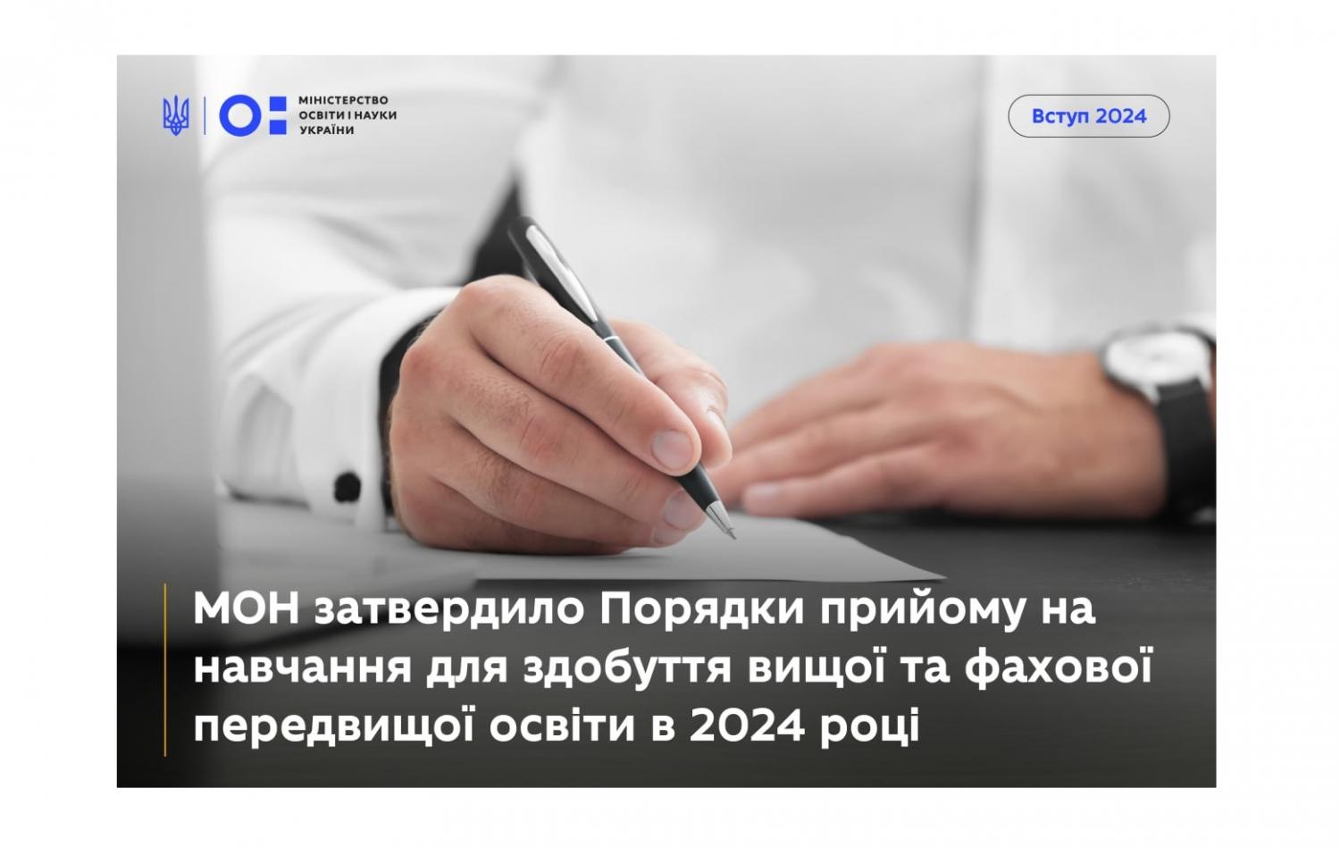 Також МОН затвердило Порядок прийому на навчання до закладів фахової передвищої освіти у 2024 році. Документ затверджений наказом № 245 від 29 лютого 2024 року (зі змінами).