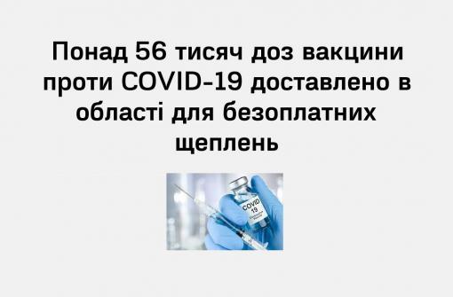 МОЗ: Понад 56 тисяч доз вакцини проти COVID-19 доставлено в області для проведення безоплатних щеплень