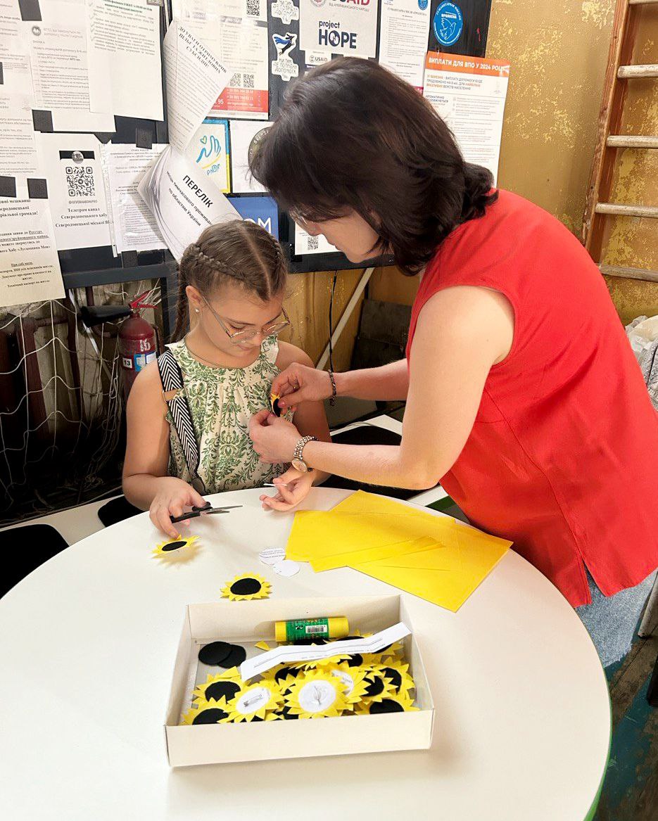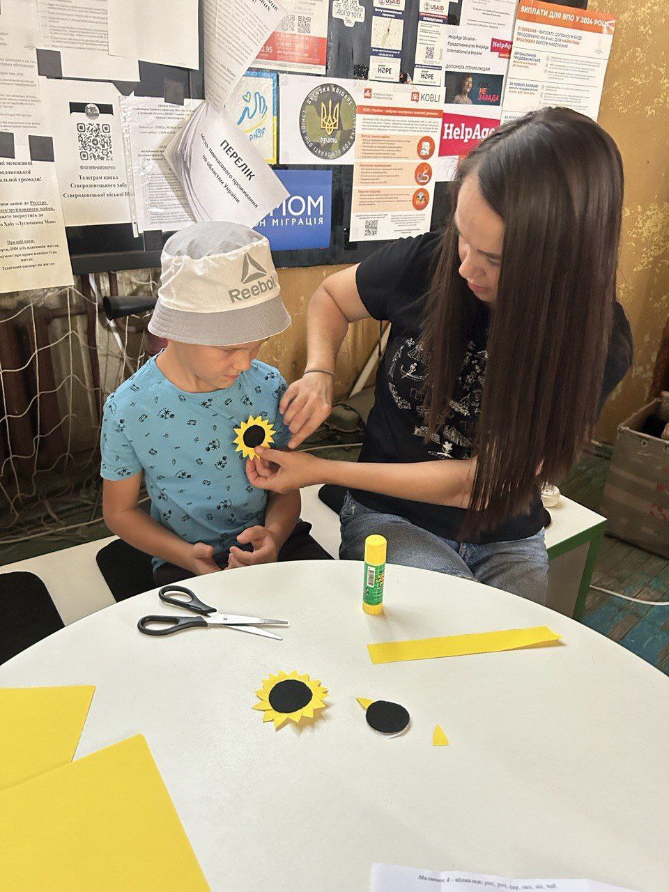 Напередодні Дня пам'яті захисників України працівники Гумхабу Сєвєродонецької громади разом з відвідувачами робили соняхи