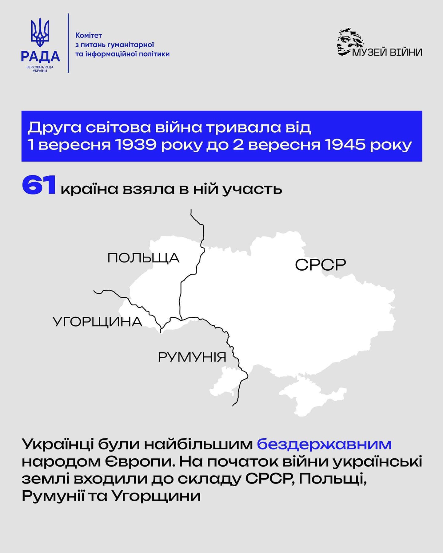 До річниці завершення війни Комітет гуманітарної та інформаційної політики спільно з Національним музеєм історії України у Другій світовій війні запускають інформаційну кампанію «Наша Перемога: Україна у Другій світовій війні». Мета — вшанувати внесок українців у перемогу та нагадати про її високу ціну.