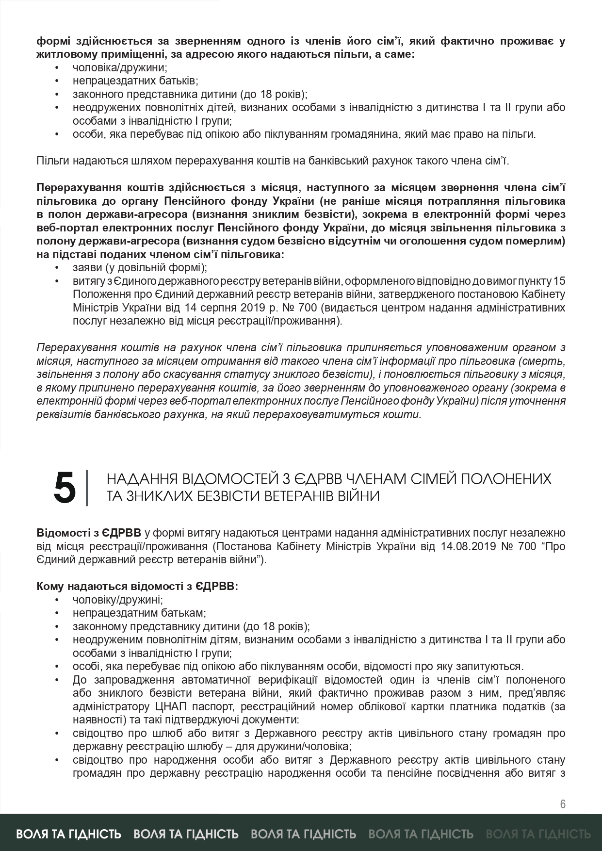 Відтепер родини полонених та зниклих безвісти ветеранів війни зможуть отримати відомості з Єдиного державного реєстру ветеранів війни (ЄДРВВ). Отримавши витяг вони зможуть користуватися належними пільгами до моменту звільнення ветерана/ветеранки з полону або визнання його/її в судовому порядку безвісно відсутнім чи померлим.