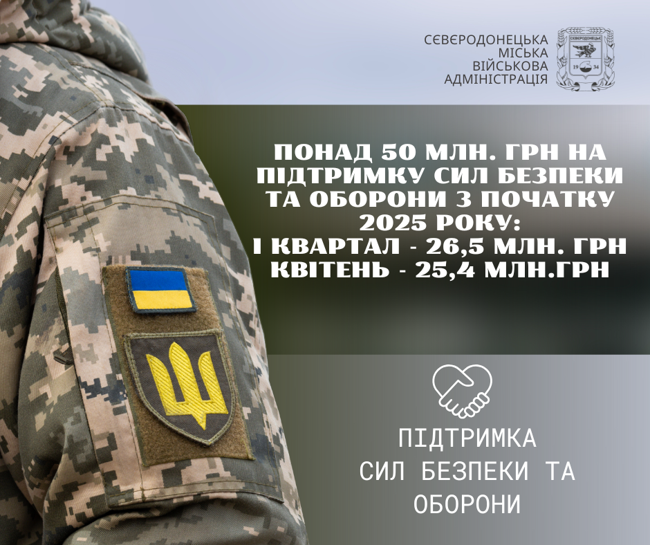 З початку року Сіверськодонецька громада спрямувала понад 50 мільйонів гривень у вигляді субвенцій з бюджету громади на підтримку сил безпеки та оборони.