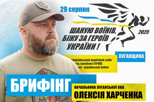 Очільник Луганщини Олексій Харченко провів брифінг щодо організації восьмого патріотичного забігу «Шаную воїнів, біжу за Героїв України!» у рамках відзначення Дня пам’яті Захисників України, які загинули за незалежність, суверенітет і територіальну цілісність України.