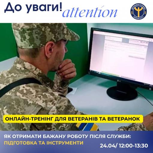 Онлайн-тренінг для ветеранів та ветеранок «Як отримати бажану роботу після служби: підготовка та інструменти»