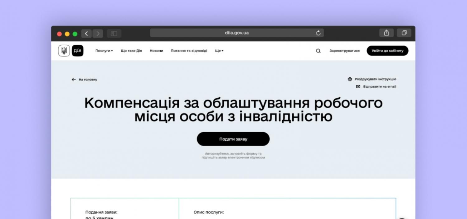 Отримання компенсації за облаштування робочого місця для людини з інвалідністю через портал Дія