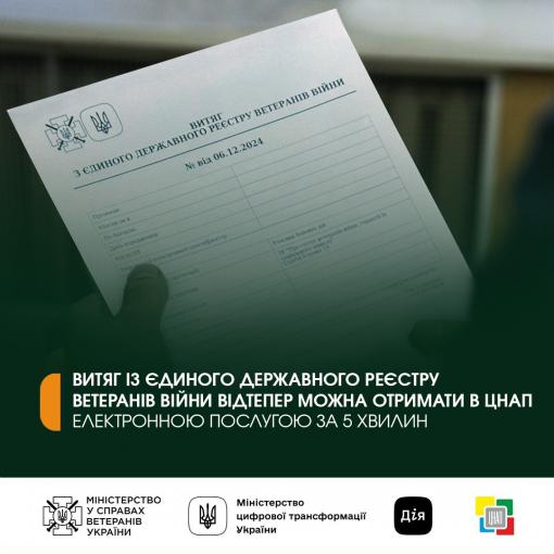 Отримати відомості з державного реєстру ветеранів можна у ЦНАПі Сєвєродонецької міської військової адміністрації Сєвєродонецького району Луганської області