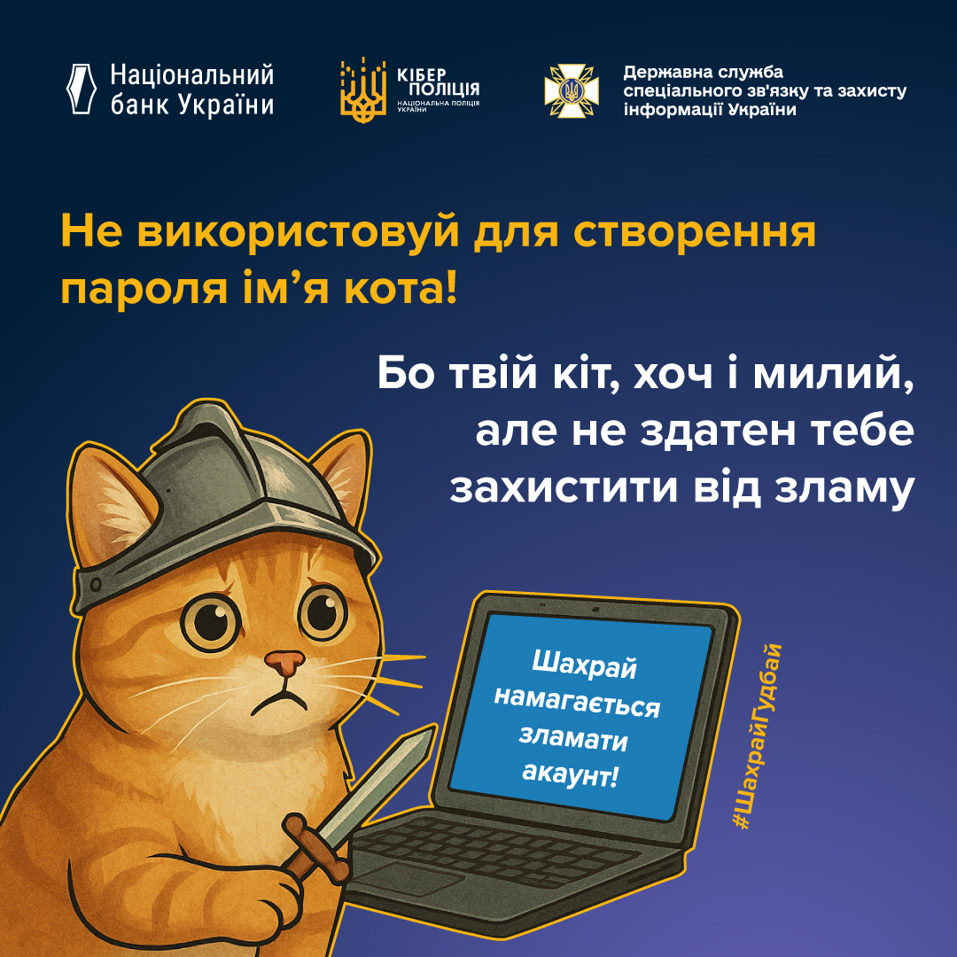 - не використовуй ім’я кота, дату народження або “qwerty”, бо твій кіт хоч і милий, але не здатний захистити твій акаунт від зламу;