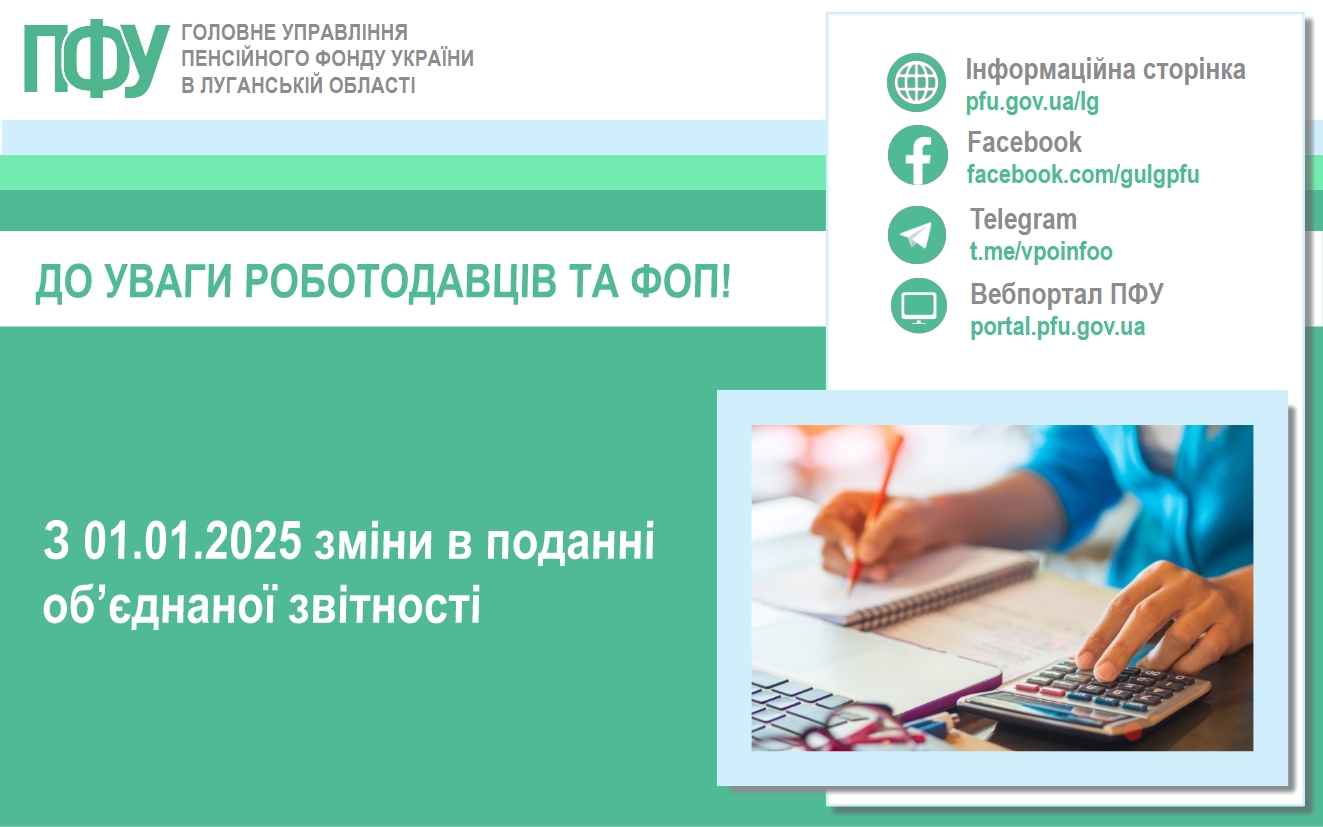 Пенсійний фонд України нагадує роботодавцям та ФОП, що з 01.01.2025 - зміни в поданні об’єднаної звітності
