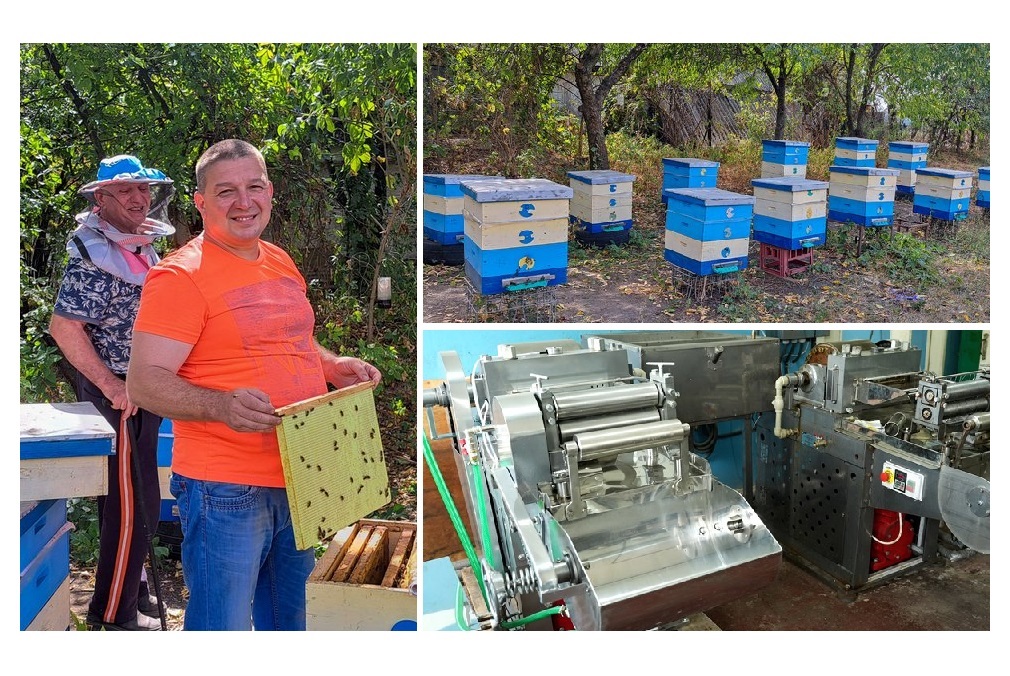Переселенець з Сєвєродонецька Роман Бурджанадзе відтворив втрачену в окупації пасіку, коли переїхав з Луганщини на початку повномасштабного вторгнення. А ще запустив підприємство з переробки воску на вощину на Дніпропетровщині. Продукцію застосовують бджолярі, як основу для майбутніх стільників, каже він, а ще — з неї можна виготовляти декоративні свічки. Зараз у нього пів сотні бджолосімей і плани щодо розвитку виробництва.