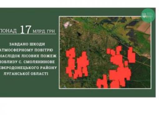 Державною екологічною інспекцією у Луганській області розраховано шкоду, заподіяну атмосферному повітрю внаслідок лісових пожеж поблизу с. Смолянинове Сєвєродонецького району.
