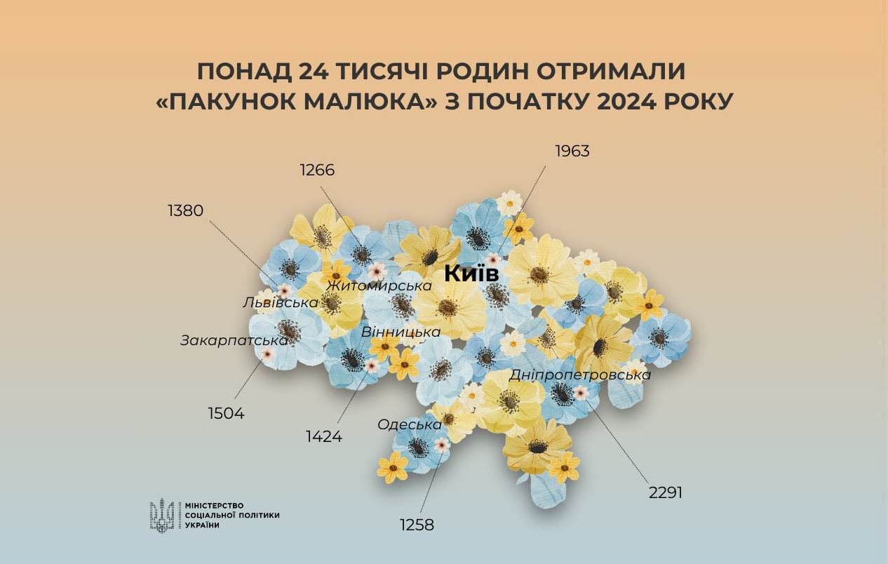 З початку 2024 року 24 360 родин обрали пакунок малюка при народженні дитини. Це одноразова натуральна допомога від держави сім'ям, у яких народилася дитина. Мета цієї програми – підтримати родину новонародженого та допомогти їй забезпечити належний догляд за немовлям.