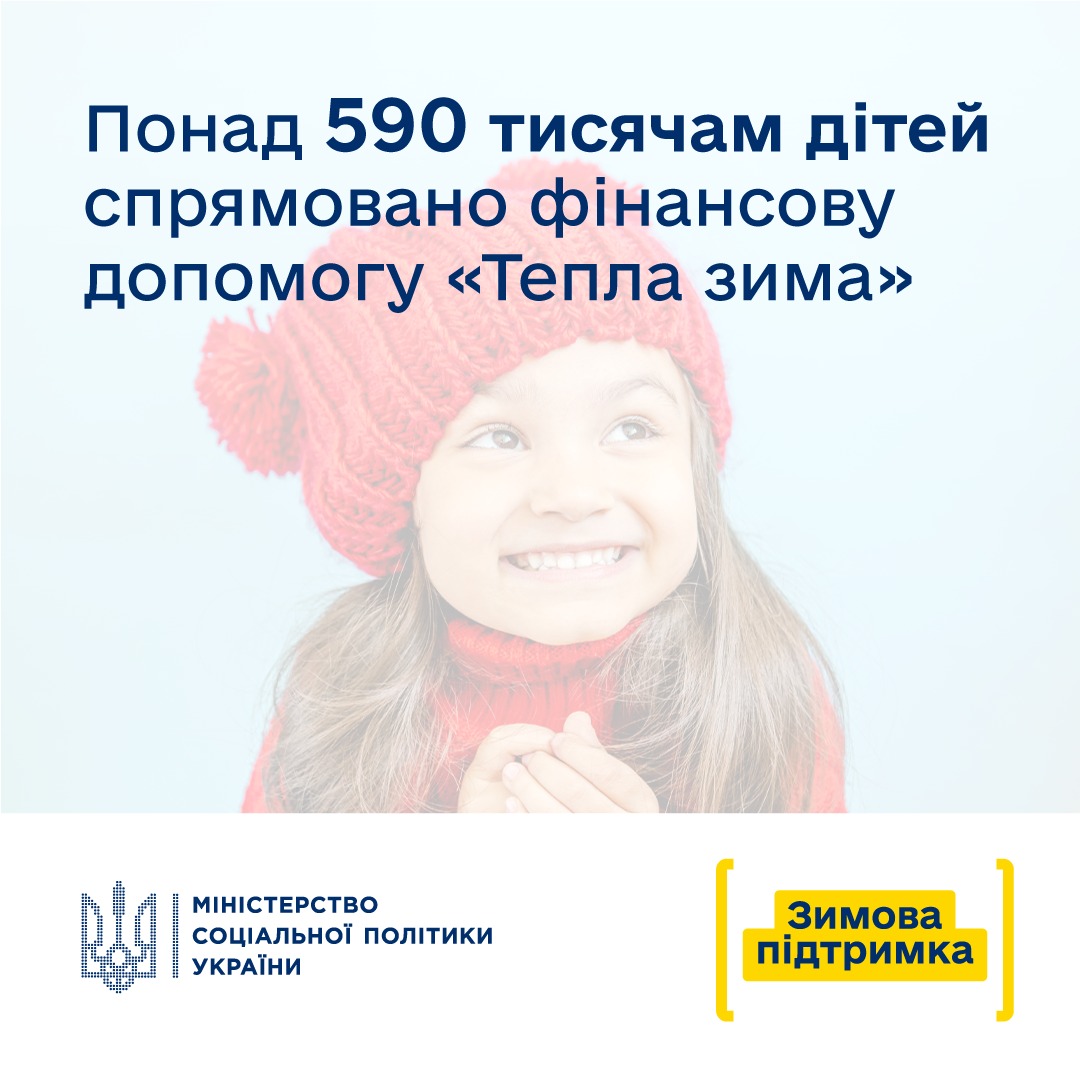 Понад 590 тисячам українських дітей спрямовано фінансову допомогу “Тепла зима”