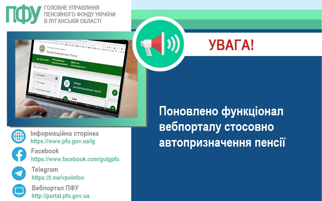 ПОНОВЛЕНО ФУНКЦІОНАЛ ВЕБПОРТАЛУ ПФУ СТОСОВНО АВТОПРИЗНАЧЕННЯ ПЕНСІЇ