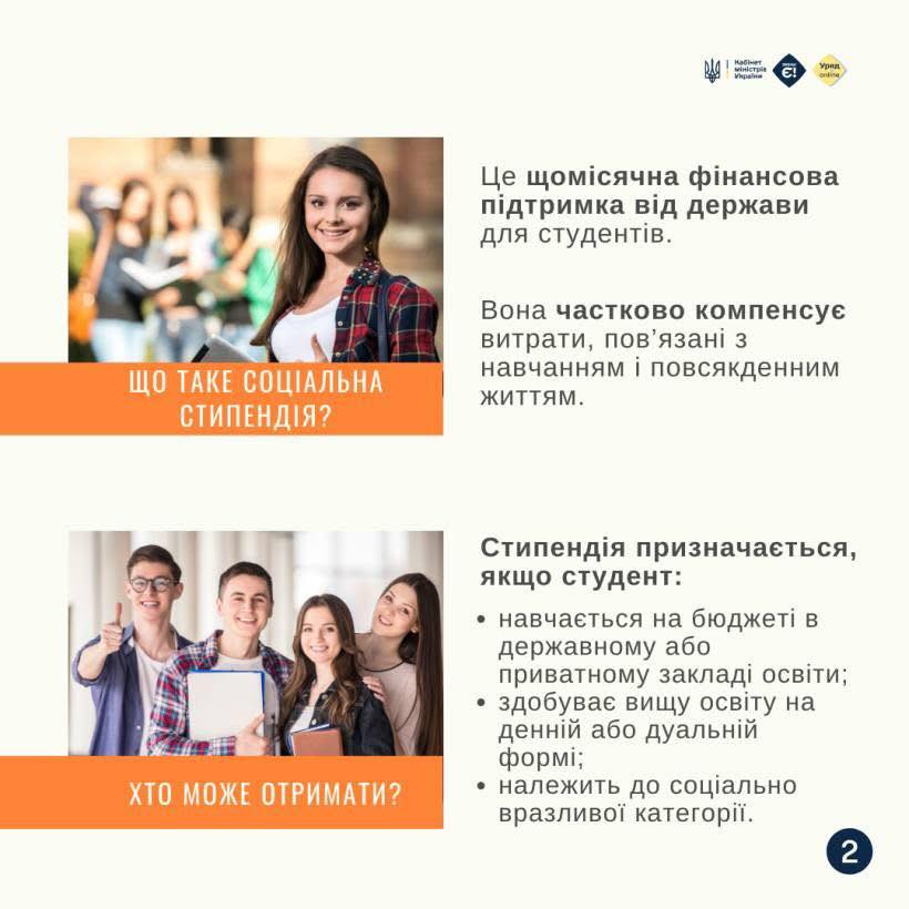 Соціальна стипендія – це щомісячна допомога студентам від держави.