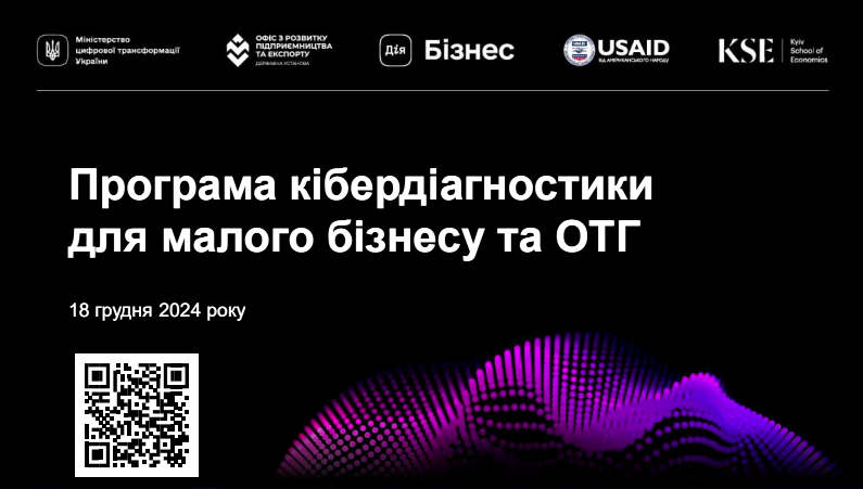 Міністерство цифрової трансформації України разом із Офісом з розвитку підприємництва та експорту та Дія.Бізнес у липні 2024 року запустили Програму з кібердіагностики бізнесу серед малих та середніх підприємств (МСП) із плановим залученням 500 у МСП протягом 2024-2025 року. В рамках Програми усі малі та середні підприємства можуть отримати один з трьох видів безкоштовної кібердіагностики: