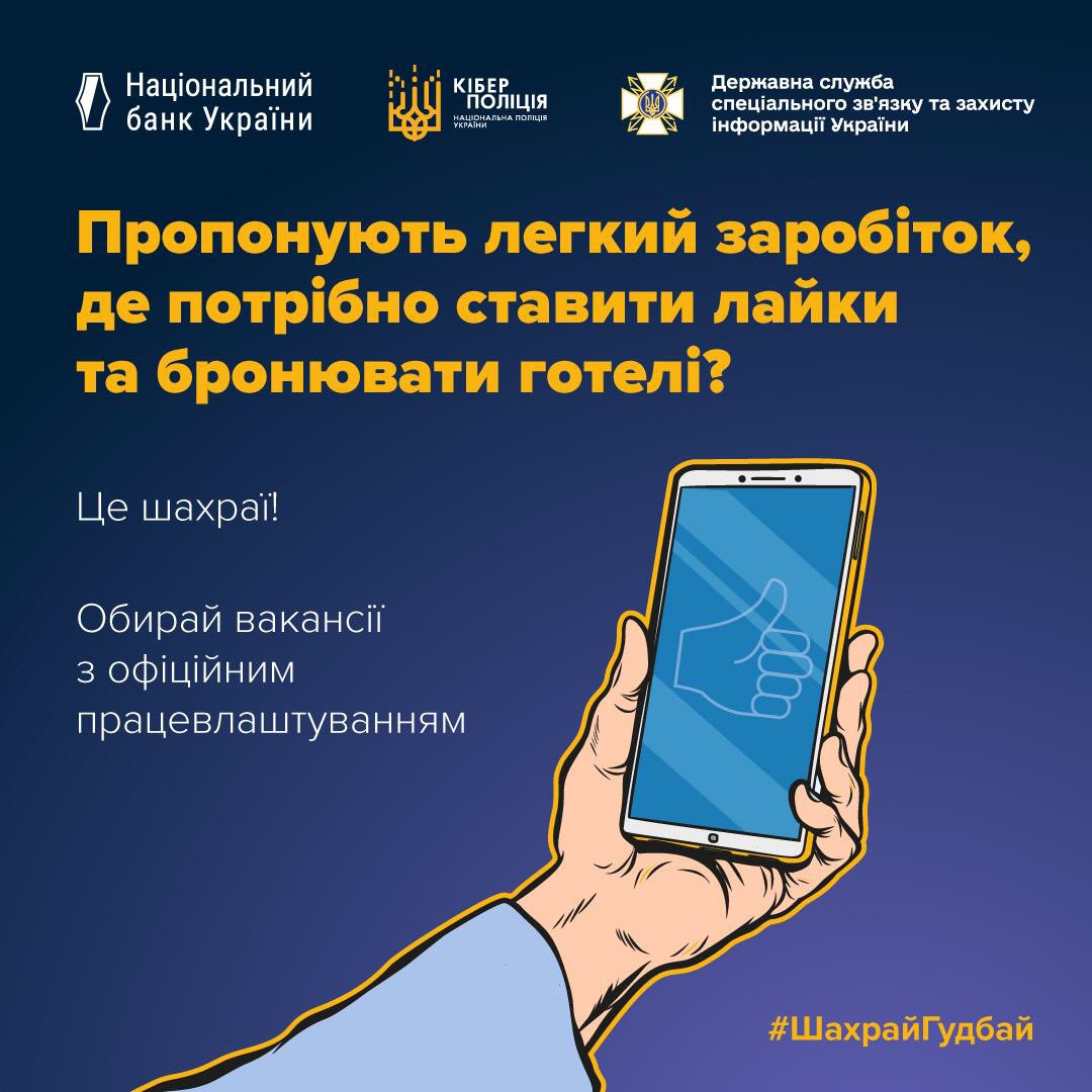 Шахраї пропонують легкий заробіток, де потрібно ставити «лайки» готелям на відомих онлайн-сервісах. Повідомлення з пропозиціями такого заробітку розсилають у популярних месенджерах.