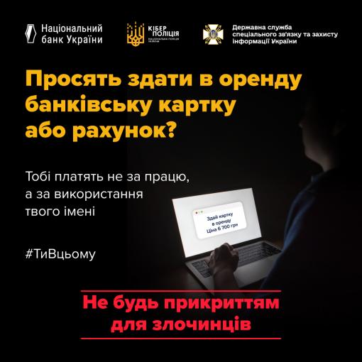 Просять здати в оренду банківську картку або рахунок? Твою картку використовують для протиправних (незаконних) дій