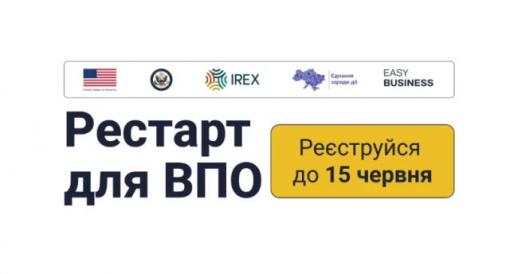 IREX та @EasyBusiness, в межах програми @Єднання заради дії, запускають освітньо- грантову програму “Рестарт для ВПО”. Реєструйся та отримай можливість виграти грант у розмірі 10 000$ на розвиток бізнесу та менторську підтримку від провідних бізнес- тренерів.
