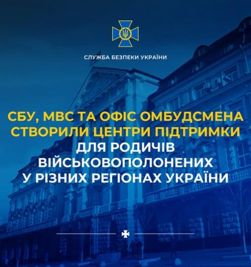 Служба безпеки України, Міністерство внутрішніх справ та Офіс омбудсмена створили у різних регіонах нашої держави центри підтримки для родичів військовополонених та осіб, зниклих безвісти внаслідок російської збройної агресії.