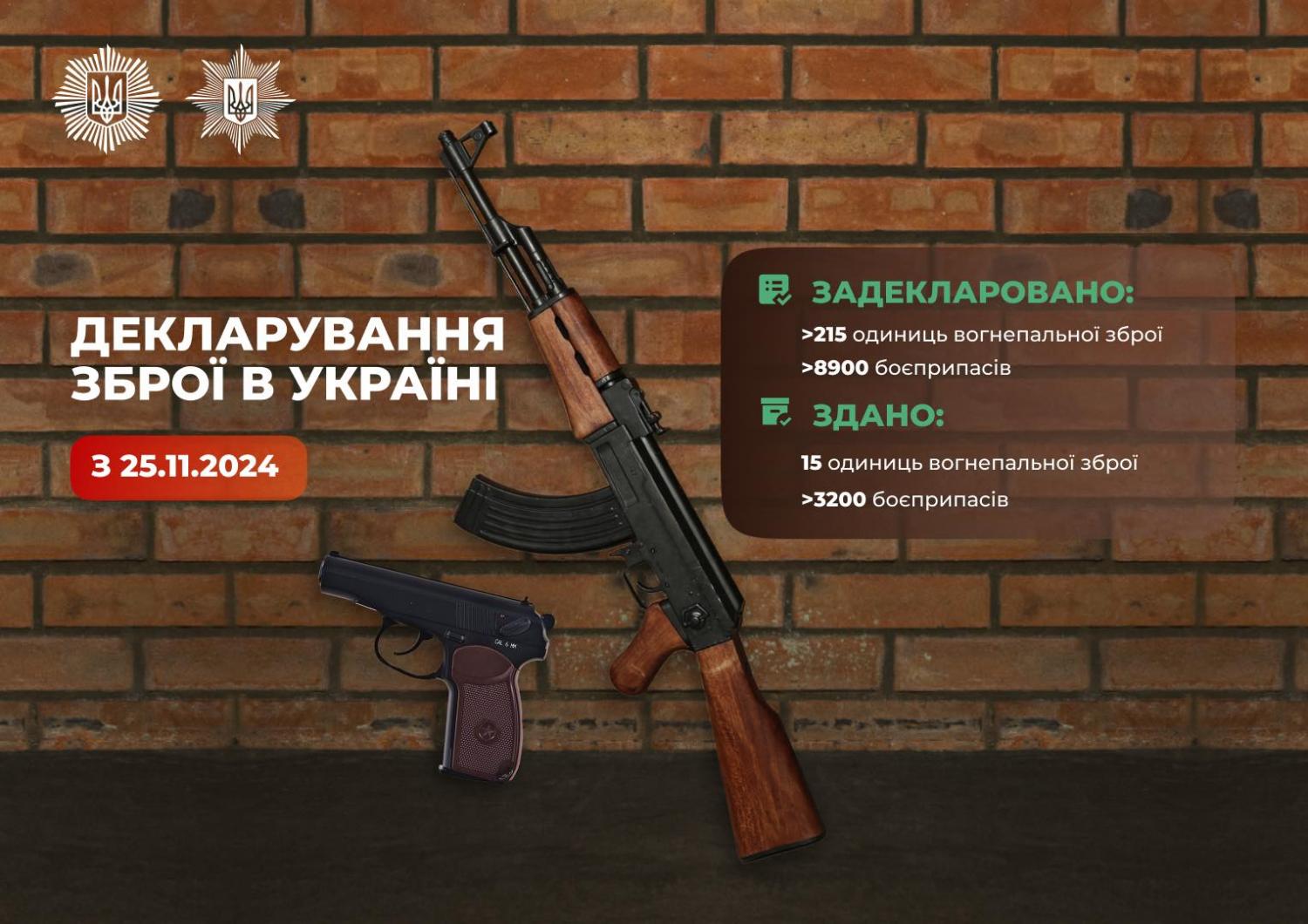 З 25 листопада 2024 року вступив у дію Закон України «Про декларування зброї» . Повна назва Закон України "Про забезпечення участі цивільних осіб у захисті України" щодо вдосконалення порядку отримання, декларування та поводження з вогнепальною зброєю.