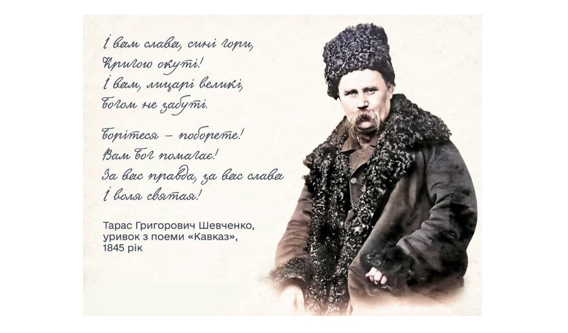 Березень в Україні часто називають Шевченковим. І це не випадково: щороку навесні Великий Кобзар приходить до нас і щороку новим, неповторним. Тарас Григорович Шевченко - велика і невмируща слава українського народу. У його особі український народ ніби об'єднав найкращі сили й обрав співцем своєї історичної слави та гіркої долі, виразником власних сподівань і прагнень. Під думи народні налаштовував свою ліру Кобзар, тому й оживало в його полум'яному слові все те, що таїлося в глибині душі народу. Як весна оновлює природу, так само поезія Великого Тараса оновлює наші душі, закликає бути чесними і милосердними, щиро любити свій народ, свою Україну.