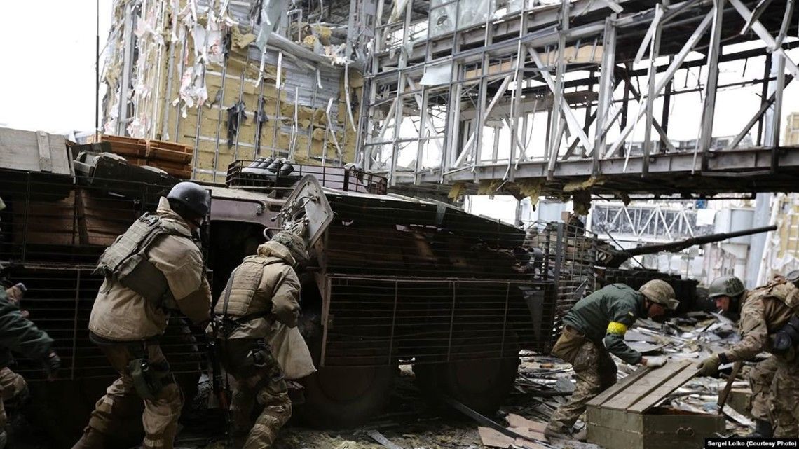 Щодо Донецького летовища, то противник систематично штурмував і старий, і новий термінали, наші оборонці не здавали позицій. До кінця грудня від старого терміналу майже нічого не залишилося. 13 січня 2015 року внаслідок постійних обстрілів з боку окупантів впала диспетчерська вежа ДАПу. За два дні противник штурмував новий термінал аеропорту, захопив частину території і заблокував українських десантників. 19 та 20 січня росіяни здійснили потужні підриви нового терміналу. Головні елементи його конструкції завалилися, поховавши під собою понад 50 українських героїв. 22–23 січня остання група українських бійців покинула руїни. Звитяжна оборона ДАПу тривала 242 дні та стала зразком незламності воїнів-кіборгів.