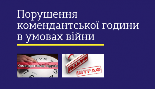 - Порушення комендантської години тягне за собою накладення штрафу на громадян від п’ятисот до однієї тисячі неоподатковуваних мінімумів доходів громадян.