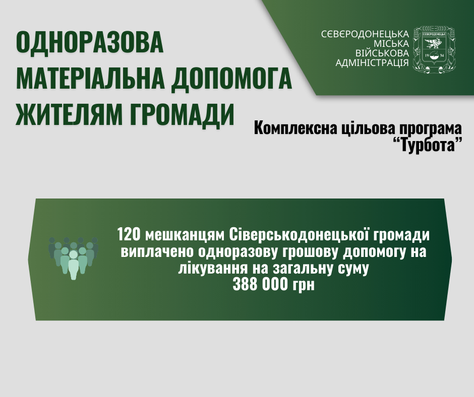 Сєвєродонецька МВА продовжує надавати матеріальну допомогу мешканцям громади на лікування. Виплати отримали ще 120 осіб