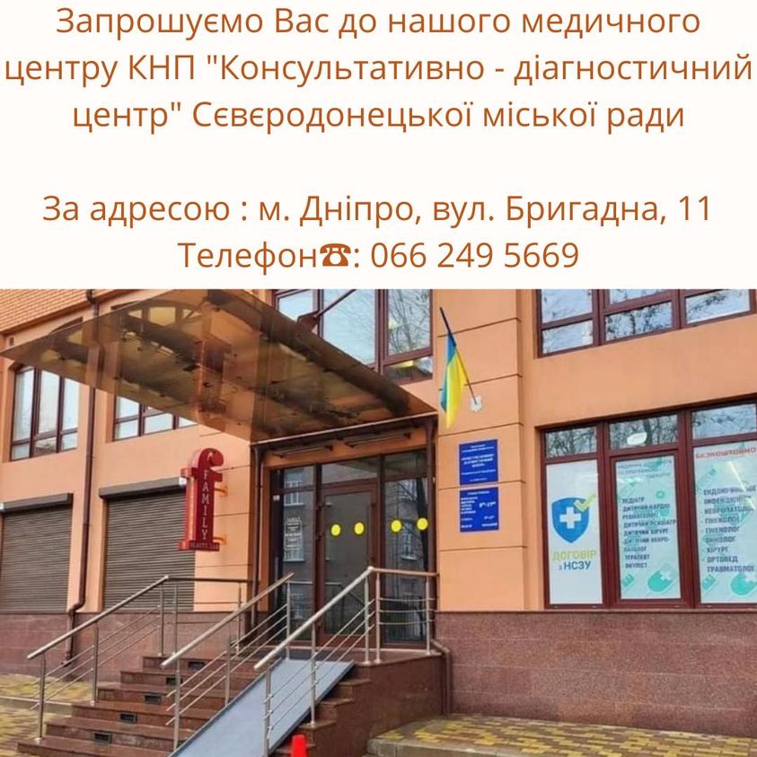За інформацією: КНП "Консультативно - діагностичний центр" Сєвєродонецької міської ради - https://www.facebook.com/profile.php?id=100057420760723