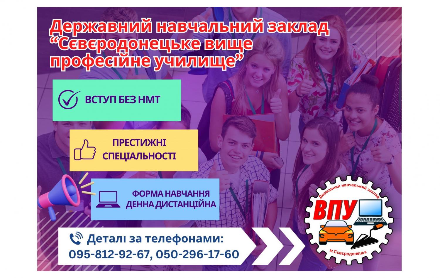Сєвєродонецьке ВПУ оголошує набір випускників 9-х та 11-х класів