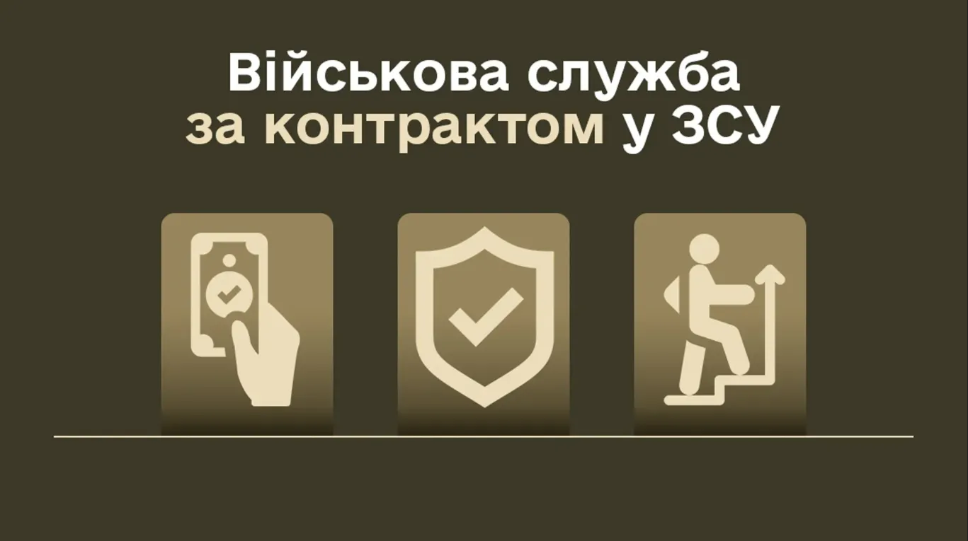 Основні переваги військової служби за контрактом: щомісячне грошове забезпечення від 20 000 грн. до 120 000 грн. залежно від військового звання, займаної посади та умов проходження військової служби; можливість кар’єрного зростання та гарантоване підвищення щомісячного грошового забезпечення у ході просування по службі; безоплатна кваліфікована медична допомога; статус учасника бойових дій (у разі участі в бойових діях) та відповідні пільги; соціальний захист військовослужбовців та їх сімей та інші.